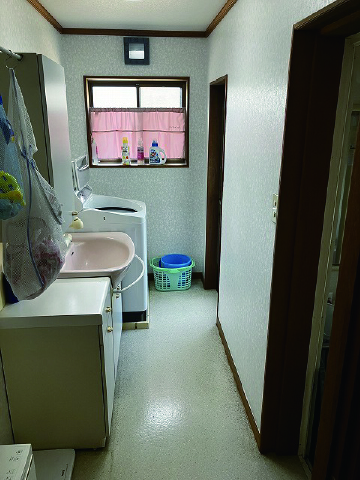 奥の洗濯機へのスペースが狭くゴチャゴチャした感じでした。