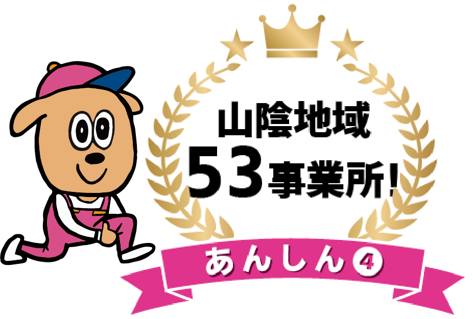 山陰に拠点数11エリア53事業所!地域ワンチームのネットワーク力と連携力で、迅速に対応できます。