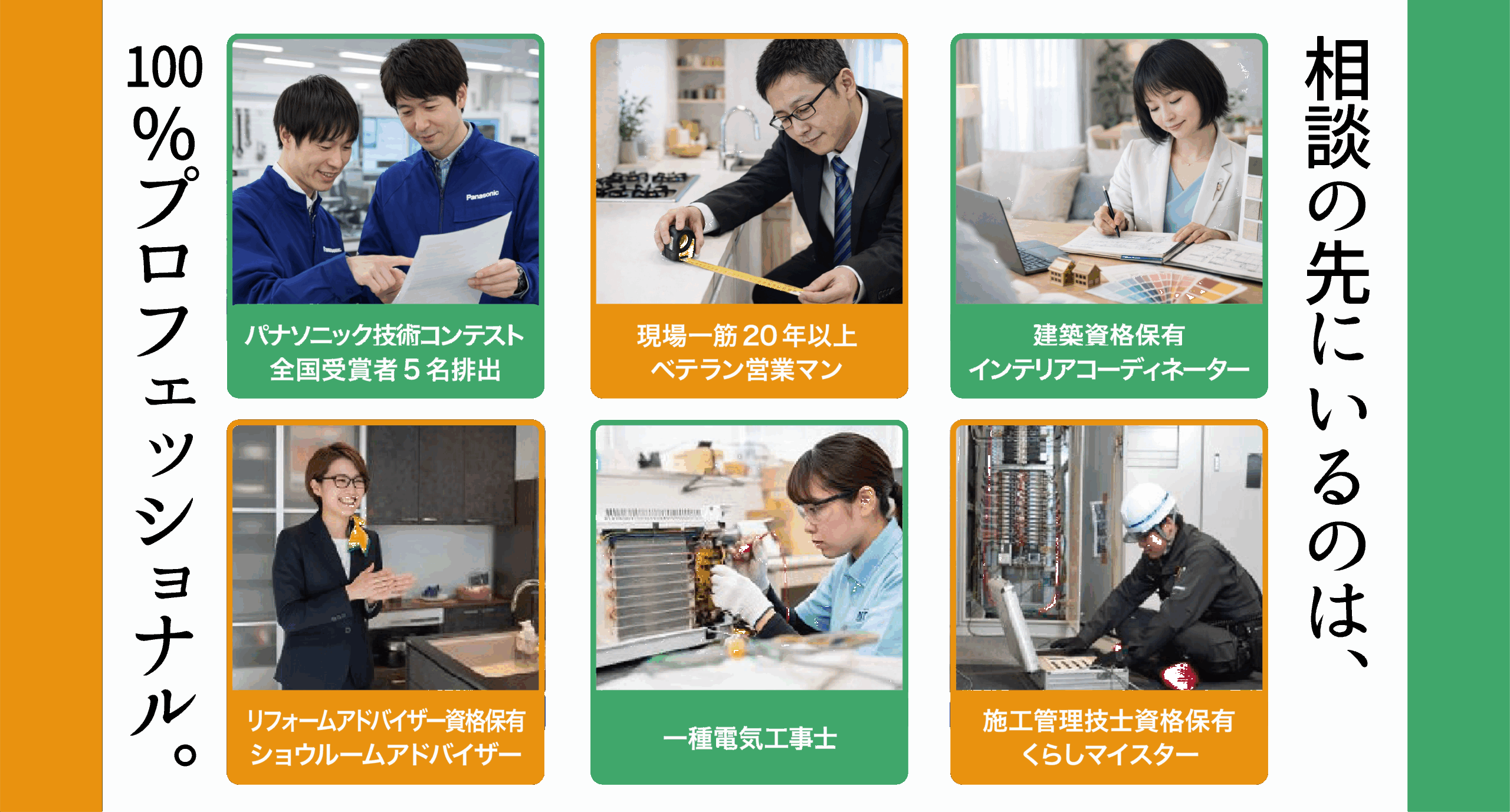 パナソニック基準の100%プロ宣言!各分野のプロフェッショナル達が責任をもって対応いたします。